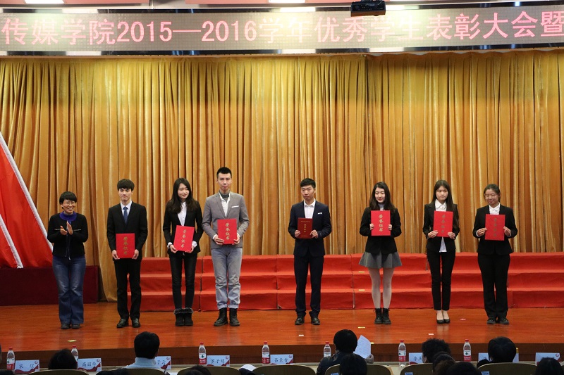 會上,學生處處長呂素香宣讀了表彰決定。大會表彰了2015—2016學年國家獎學金、國家勵志獎學金、北京市先進班集體、校先進班集體、校優秀學生獎學金、校三好學生、校優秀學生干部、學院學術藝術周優秀獎、學院“五早一晚”先進集體和個人、學院誠信教育月先進集體和個人、“藝傳之星”以及學科競賽優勝獎等獲得者。第四屆全國經濟新聞作品大賽二等獎獲得者李穎超、第十三屆學院獎金獎團隊成員曾佳、第八屆大學生廣告藝術大賽北京賽區二等獎團隊成員楊亞芮、彈力式方程賽車國內總成績第二團隊成員宋甲凱、2016時報金犢獎大陸二等獎獲得者郭春園等同學發表了他們的獲獎感言,感謝辛勤付出的老師,并和大家分享了他們參賽經歷。