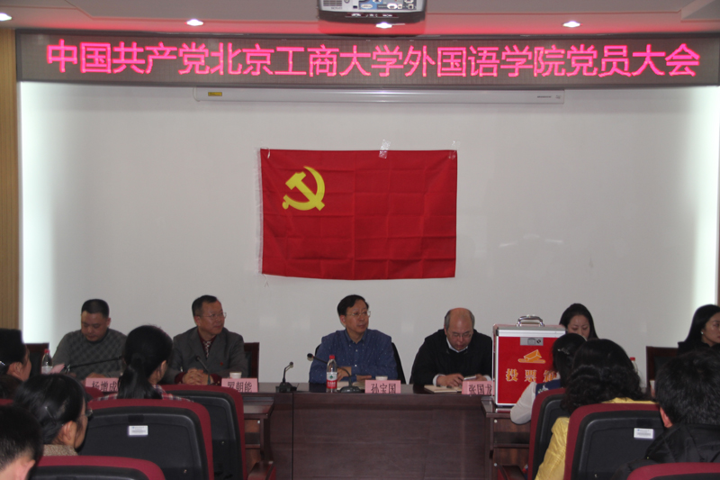 12月14日下午,中國共產黨北京工商大學外國語學院黨員大會在阜成路校區舉行,學院49名正式黨員和12名預備黨員參加大會。校長孫寶國出席會議并講話。黨委組織部部長張國龍參加會議,大會由外國語學院院長劉紅艷主持。