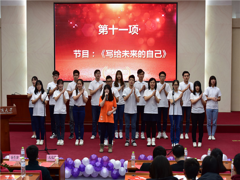 表彰大會(huì)在莊嚴(yán)的國(guó)歌聲中拉開帷幕,院長(zhǎng)謝安平為大會(huì)致辭,他對(duì)同學(xué)們一年來(lái)的所取得的成績(jī)給予了肯定與贊揚(yáng),希望廣大學(xué)生將自身提升與國(guó)家發(fā)展相結(jié)合,努力學(xué)生,堅(jiān)定法治信仰,再創(chuàng)輝煌。