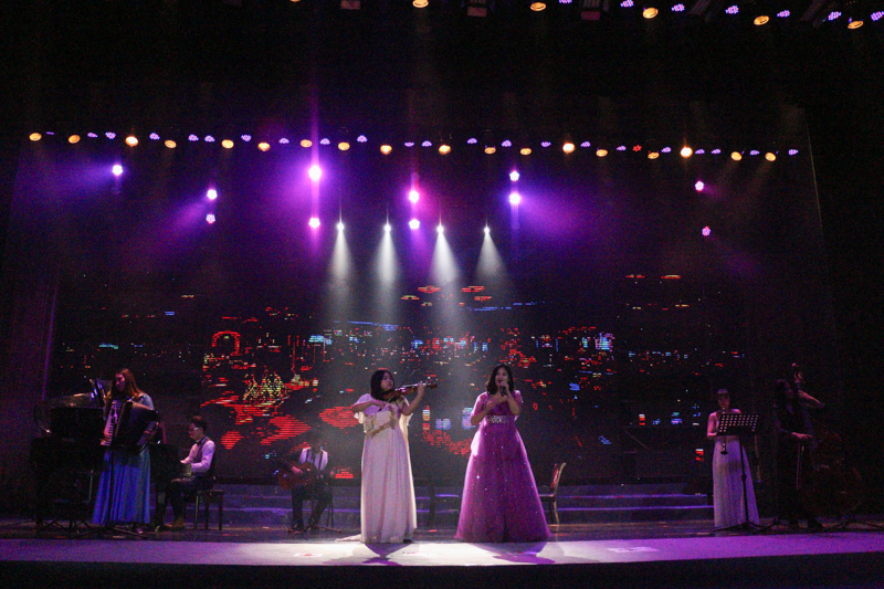 管樂團的成員為觀眾帶來了《月下低語》和《搖滾卡農》,并與合唱團成員共同為觀眾帶來《莫斯科郊外的晚上》,小提琴、鋼琴等樂器碰撞在一起,美妙的音符競相跳躍,優美的旋律在文體館上空飄蕩,使北工商的夜晚更加迷人。