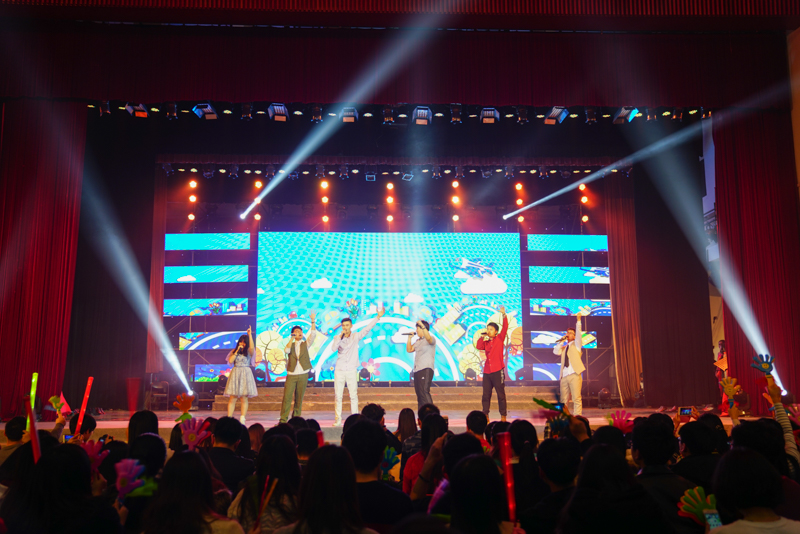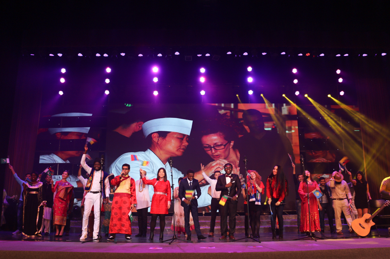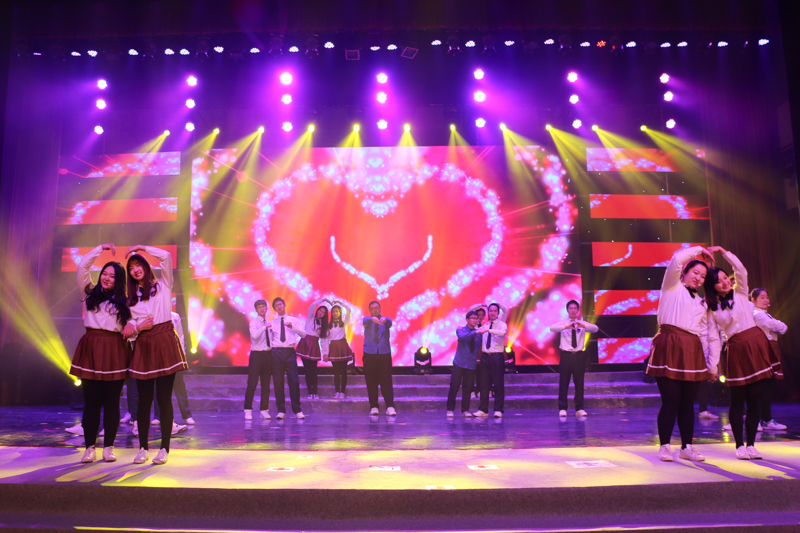歌唱類的節目同樣精彩紛呈。無伴奏的人聲合唱阿卡貝拉,《布谷鳥之歌》《好想你》《小幸運》等歌曲清新而婉轉。學校合唱團表演的《雪花的快樂》和《田野在召喚》兩首歌曲將大家帶入安靜祥和的氛圍,專業的演出、悠揚的歌聲贏得了陣陣掌聲。來自17個國家的27名留學生揮舞著各自國家的國旗,用自己國家的語言為大家送上新年祝福,并用中英文演唱了一曲《友誼地久天長》,讓大家感受到世界不同國家的溫暖情誼。在節目《青春夢響》中,校園歌手們用《改變自己》《我的未來不是夢》等一首首節奏輕快明朗的歌曲唱出了心里的夢想和對夢想的那份追求。