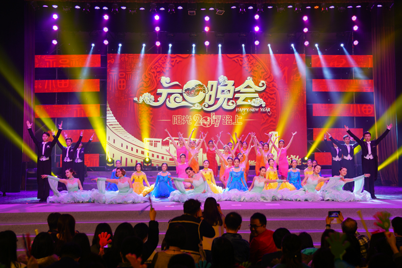 騏驥過隙,校園里到處洋溢著迎接新年的氣息,璀璨奪目的彩燈將兩校區校園裝扮得色彩斑斕。天橋、“百花”雕塑被藍色的彩燈環繞,絢麗奪目。良鄉校區文體館內,舞臺上燈光閃耀,光彩熠熠;舞臺下座無虛席,氣氛熱烈。12月30日晚,“陽光路上——學校2017年元旦晚會”隆重舉行。