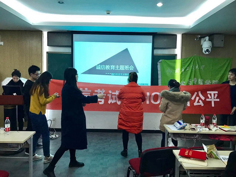 11月中下旬,學院48個本科生班級、6個研究生班級召開了誠信教育主題班會。在班主任和輔導員的帶領下,通過闡述誠信定義、講述誠信故事、開展誠信辯論、演繹誠信短劇、舉辦誠信游戲、播放誠信視頻、進行誠信宣誓、誠信簽名表決心以及結合身邊誠信案例進行自我剖析和反思總結,將誠信資料做成豐富多彩的幻燈片與視頻,以動態的影像進行分享交流。本次誠信教育主題班會全員參與,集體討論分享,成效顯著。視傳163班李天暢說:“誠信教育班會使社會主義核心價值觀得到宣揚,同學們的誠信意識明顯增強。”