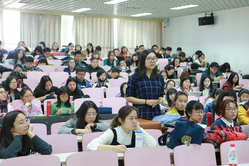 隨后,國際交流與合作處副處長賀冬萌向同學(xué)們分類介紹了我校2017年自費(fèi)公派出國本科項(xiàng)目的具體內(nèi)容,并就我校2017年派出項(xiàng)目的申請材料要求、申請條件以及申請流程做了講解。