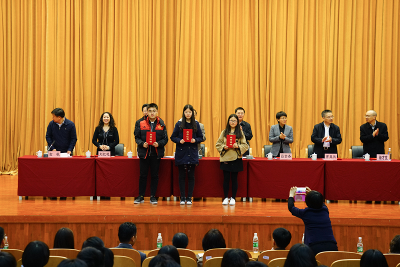 學校辦公室主任王小藝、學生處處長呂素香、理學院院長曹顯兵、外國語學院院長劉紅艷、黨委宣傳部副部長褚財寬、各學院主管教學副院長、主管學生工作副書記、輔導員及班主任代表和2014、2015、2016級學生代表共同參加了表彰活動。