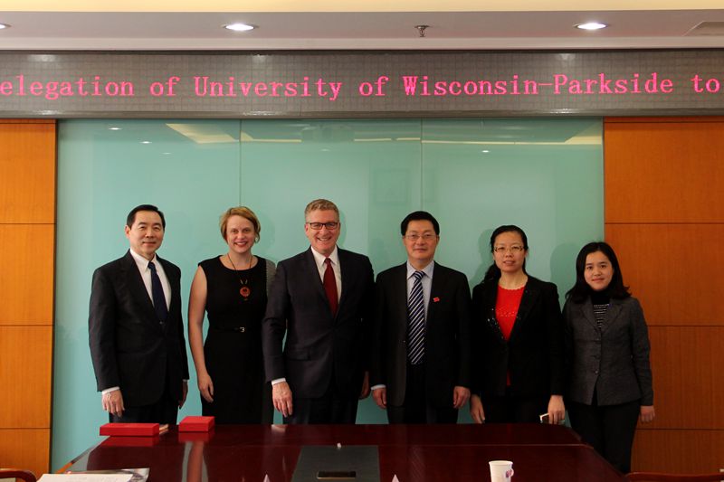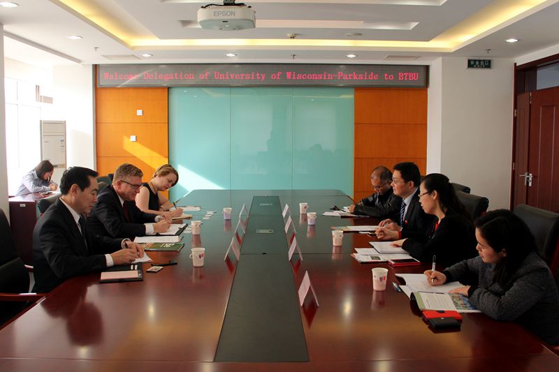 3月28日,美國(guó)威斯康辛大學(xué)帕克賽德校區(qū)副校長(zhǎng)羅伯特·杜可非(Robert Ducoffe)一行三人訪問(wèn)我校,李朝鮮副校長(zhǎng)在阜成路校區(qū)親切會(huì)見(jiàn)了代表團(tuán)一行。