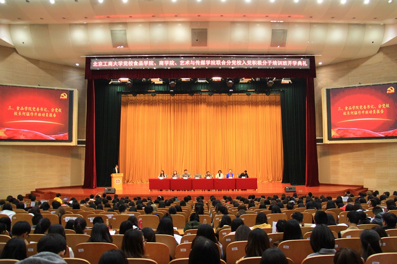 3月29日,食品學(xué)院、商學(xué)院、藝術(shù)與傳媒學(xué)院聯(lián)合分黨校入黨積極分子培訓(xùn)班在良鄉(xiāng)校區(qū)舉行開學(xué)典禮。食品學(xué)院黨委書記何猛、藝術(shù)與傳媒學(xué)院黨委書記林剛、食品學(xué)院黨委副書記胡燕霞、商學(xué)院黨委副書記樊江濤、藝術(shù)與傳媒學(xué)院黨委副書記劉晶以及來(lái)自三個(gè)學(xué)院輔導(dǎo)員和近500名學(xué)員參加了此次開學(xué)典禮.