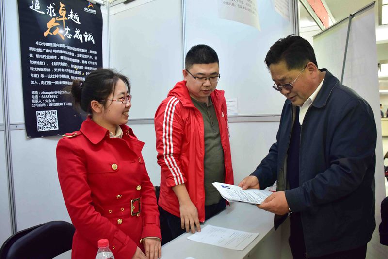 幾位校領導在現場首先對前來招聘的用人單位表示了熱烈歡迎,感謝用人單位帶來的眾多優質崗位以及對我校就業工作的大力支持。隨后各位校領導來到單位展區,并與部分用人單位進行了深入細致的溝通。張德玉副書記詳細詢問了簡歷接收情況以及對學校就業工作的意見和建議,并積極推薦我校畢業生。他表示,我校畢業生就業態度積極、專業知識扎實、工作踏實肯干,多年來備受用人單位好評。歡迎用人單位今后多來我校開展招聘工作,校企雙方共同促進大學生就業工作的全面進展。校友企業居然之家招聘專員李經理表示,在校園招聘領域學校每年全方位提供各類招聘服務,感謝校領導對此項工作的高度重視和學校多年來對校友單位各項工作的大力支持。