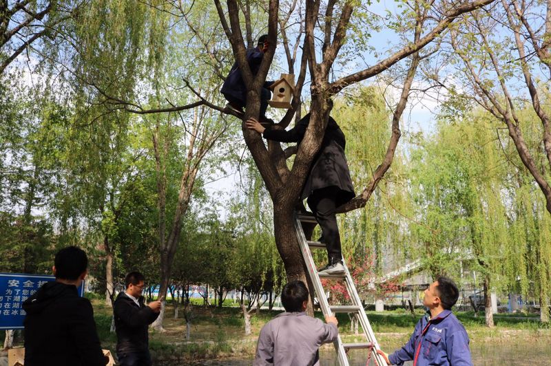 此前,根據(jù)學(xué)生小動(dòng)物保護(hù)協(xié)會(huì)的建議,后勤基建處第二黨支部黨員同志利用業(yè)余時(shí)間,用報(bào)廢的廢木料專門為協(xié)會(huì)制作了木質(zhì)鳥巢。聘任儀式后,后勤部門黨總支、校團(tuán)委老師與學(xué)生們共同掛搭鳥巢18個(gè)。