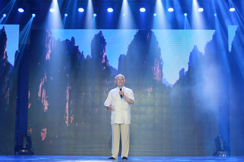 年過八旬的著名朗誦藝術家殷之光精神抖擻,他揮動雙臂,用自己獨創的擊鼓配樂的方式朗誦表演了岳飛的《滿江紅》、文天祥的《過零丁洋》,將誦讀會推向高潮。大家跟隨名篇一起誦讀,激昂的詩句點燃聽眾的激情,場上響起了經久不息的掌聲。