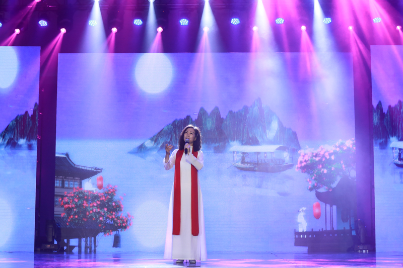 朗誦藝術家、北京朗誦藝術團演員隊隊長鄭健康朗誦了王懷讓的力作《中國人,不跪的人》,氣勢磅礴、慷慨激昂,讓觀眾領略到中國人民的錚錚傲骨和不屈精神。朗誦藝術家、環球旅游頻道主持人張松松朗誦的《大堰河,我的保姆》感情飽滿真摯,催人淚下。全民悅讀北京海淀閱讀會主席李軍帶來的《紅土地上的愛情絕唱》,歌頌長征中靜靜守望丈夫回歸的故事,深情而感人。房山區朗誦協會會長王鳳江通過《相信未來》歌頌了在逆境中的堅守與展望,鼓勵同學們矢志不渝地為未來而努力。著名朗誦藝術家、全民悅讀北京閱讀分會主席徐連勇與房山悅讀會主席趙曉義共同吟誦了慷慨激昂的《青春中國》。國家一級演員杜寧林傾情朗誦了舒婷的《祖國啊,我親愛的祖國》,表達了對祖國的一片深情。著名朗誦表演藝術家米歐身著古裝,飽含深情地以全篇并序的完整形式呈現了文天祥的《正氣歌》,演出一氣呵成,令人蕩氣回腸。著名朗誦藝術家若丹伴隨著悠揚的樂曲聲情并茂地朗誦了《春江花月夜》。