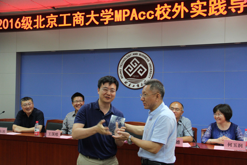 商學(xué)院院長王國順教授就商學(xué)院近幾年的發(fā)展情況、招生情況以及校外導(dǎo)師對學(xué)生的指導(dǎo)情況進(jìn)行了介紹,并介紹了今年MPAcc的招生情況。2017年有634名考生報(bào)考我校MPAcc,其中有444個(gè)考生的分?jǐn)?shù)上了國家分?jǐn)?shù)線,上線率達(dá)70%,單科超過國家線達(dá)20至30分,共錄取75人,是優(yōu)中選優(yōu)。商學(xué)院于2011年開始招收MPAcc的學(xué)生,至今已有7年,共有5屆學(xué)生畢業(yè)。他強(qiáng)調(diào),MPAcc在全國的影響力越來越大,離不開各位校外導(dǎo)師的支持,并特別感謝了校外實(shí)踐導(dǎo)師對北京工商大學(xué)無私的付出。