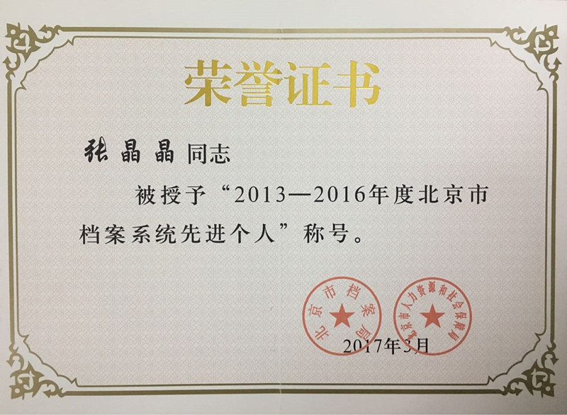 為表彰先進(jìn),弘揚(yáng)正氣,進(jìn)一步激發(fā)檔案系統(tǒng)廣大干部職工的積極性和創(chuàng)造性,近日北京市檔案局、北京市人力資源和社會保障局聯(lián)合組織開展先進(jìn)集體和先進(jìn)個人的評選表彰活動。我校檔案館張晶晶同志在此項活動中被授予“2013——2016年度北京市檔案系統(tǒng)先進(jìn)個人”稱號。