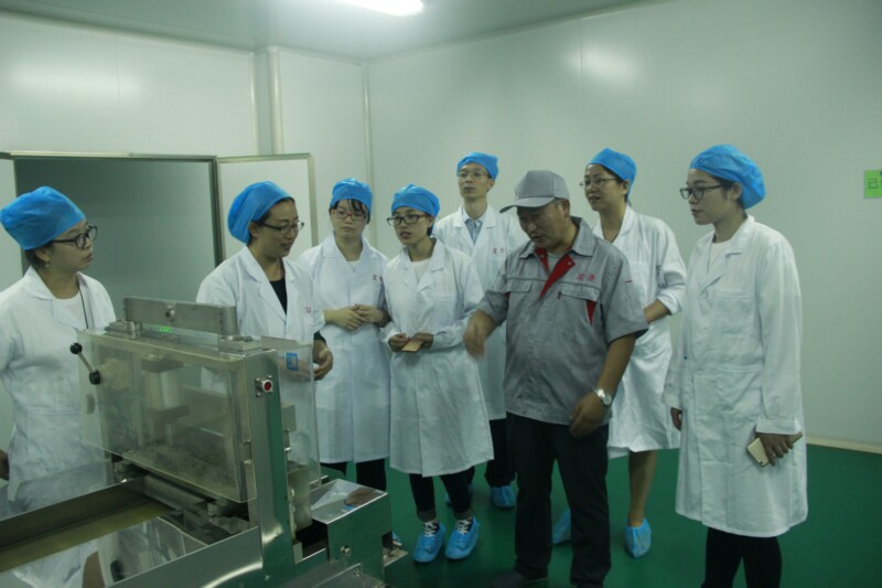 下午,實踐團參觀了北京宏濟藥業有限公司。公司負責人帶領大家參觀了公司的留樣室、高溫室、菌培養室等實驗室及生產車間。同學們看到課堂上學習的理論及儀器設備能在具體生產中得到應用都很興奮,積極圍繞專業特點及調研目的向工作人員展開提問,學習了原子吸收分光光度計、高效液相色譜儀、旋轉蒸發器等儀器的分析方法,了解了原料及重金屬檢測、廢液處理等相關規定,觀摩了藥品凈選、切割、處理、包裝整個生產過程。