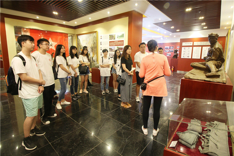 7月9日,實踐團成員前往位于灌陽縣的新圩阻擊戰陳列館,重溫長征歷史,瞻仰革命先烈。講解員細致地為實踐團成員講解了新圩阻擊戰的歷史背景和慘烈戰況。陳樹湘師長被俘后,寧死不屈,斷腸取義,以及祖孫三代保紅旗的感人故事讓人印象深刻。實踐團學生楊文激動地說:“從北京到灌陽,從現在到過去,改變的是沿途的風景,而不變的是歷史的饋贈。重溫這段歷史特別是陳樹湘師長斷腸取義的故事,不僅體會到革命烈士對革命事業無比的忠誠,和對人民至上、信仰天高的長征精神的切身實踐,還讓那顆拳拳的報國之心跳動的更加劇烈。”其他團員們也紛紛表示,要把紅軍精神貫穿到日常學習生活中,讓紅軍精神代代相傳,發揚艱苦奮斗精神,勇于創新,樂于奉獻,發揮共產黨員先鋒模范作用,不忘初心,在新長征路上建功立業。