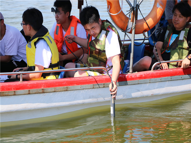 在白洋淀北淀和南淀地區(qū),實(shí)踐團(tuán)懷著飽滿的熱情,乘船前往22個國控和省控監(jiān)測點(diǎn)對生態(tài)、水質(zhì)、大氣和噪聲四個方面進(jìn)行數(shù)據(jù)測量和采樣。兩位帶隊老師認(rèn)真指導(dǎo)隊員們的實(shí)踐工作,及時提出意見,幫助成員們更好的測量數(shù)據(jù)。每日馬不停蹄的監(jiān)測工作結(jié)束后,實(shí)踐團(tuán)又馬上投入到緊張的數(shù)據(jù)整理及分析工作中。
