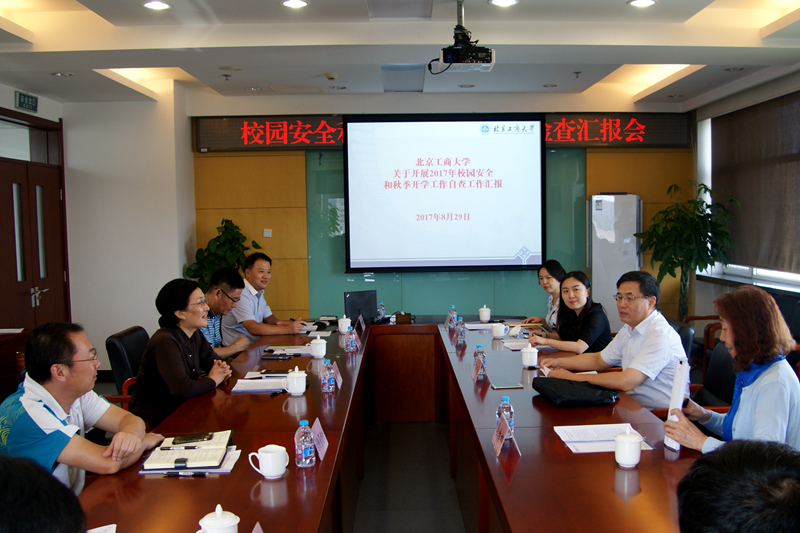 8月29日下午,北京市教育紀工委書記王文生、干部馬維娜來到我校,代表市教育兩委一室對我校2017年校園安全和秋季開學工作進行檢查。我校副校長張耘代表學校進行了專題工作匯報。相關(guān)部門、學院負責人參加了匯報會。