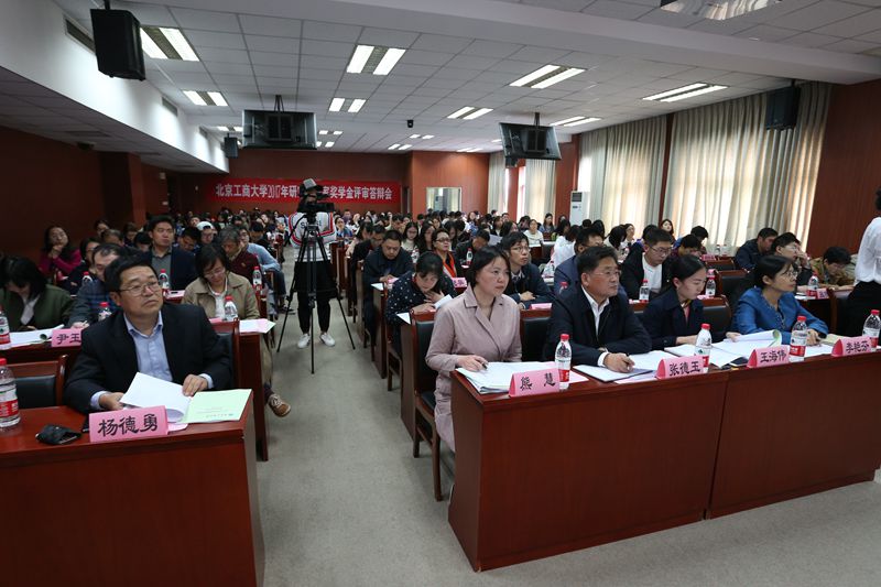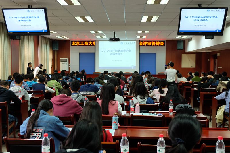 10月11日,學校首次舉辦研究生國獎候選人答辯會,由10個學院通過初評和公示,推選出的50名研究生國家獎學金答辯候選人,按照抽簽順序,依次上場進行了3分鐘的ppt展示。根據學科差異,答辯會分為文科組和工科組兩場,文科組候選人31名,工科組候選人19名。評審答辯會采取投票積分制,老師為專家評委,每投1票候選人計5分,學生為大眾評委,每投1票候選人計1分,候選人累計總得分按由高到低排序,文科組和工科組分別差額掉得分最低的2人。最終從50名候選人中,投票產生46名研究生國獎獲得者(老生)。答辯會上各位候選人身著正裝,佩戴校徽,侃侃而談,展現了自己讀研期間的豐碩成果,分享了自己的學習和科研經驗,來自食品學院學碩趙健發表論文14篇(其中本人擔任第一作者5篇),申請發明專利2項(分別排名3和4),其中本人任第一作者1篇論文發表于刊物《Food Chemistry》(SCI收錄Q1,影響因子4.5);來自商學院的學碩岳慧麗以發表了4篇學術論文(均為第二作者),其中2篇發表于《Food Control》(SCI收錄Q1,影響因子3.5);來自計算機與信息工程學院的專碩易圣倫發表論文7篇(其中本人擔任第一作者5篇),申請發明專利3項(均為排名2),其中本人任第一作者1篇論文發表于刊物《SENSORS》(SCI收錄Q1,影響因子2.7),他還和北京鐵路研究院合作項目,負責高速列車測速測距的算法研究,所提出的算法已經被采用并投入使用;來自經濟學院的專碩葉鳳嬌榮獲2017年第九屆“挑戰杯”首都大學生課外學術科技作品競賽特等獎、第五屆數學中國數學建模國際賽二等獎、全國市場調查分析大賽北京市一等獎等。