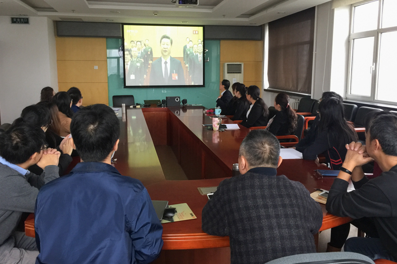 舉國盛事,萬眾矚目。10月18日上午9點,中國共產黨第十九次全國代表大會在北京隆重開幕。我校在兩校區專門設立了多個集中收看地點,積極組織廣大師生收看收聽大會開幕盛況。師生們分別在會議室、教室、食堂、宿舍等地點,通過電視、網絡和廣播等方式收看收聽了大會開幕式。