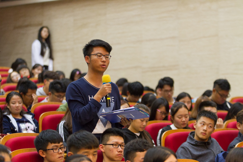 孫校長從一位導師的角度給予了在場同學諄諄教誨,以一位朋友的身份講述了身邊的各種案例,還現場解答了同學們關于專業、考研、大一的困惑以及大學如何培養能力等問題,現場氣氛熱烈,孫校長熱情的解答和富有哲理的話語不時贏得在場學生陣陣掌聲。講座結束后,記者隨機進行了采訪。傳媒171班的蔡丹丹同學說:“通過這次講座我對孫寶國院士有了更深刻的認識,也對自己的大學生活有了更深層的了解與思考,我要努力磨練自己,成為一個自尊自信的人。”經貿171班的駱樂同學談到:這次講座使我看到了一個可敬可親的校長,也為我的大學學習和生活指明了方向。
