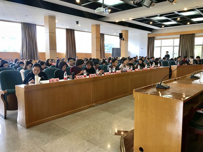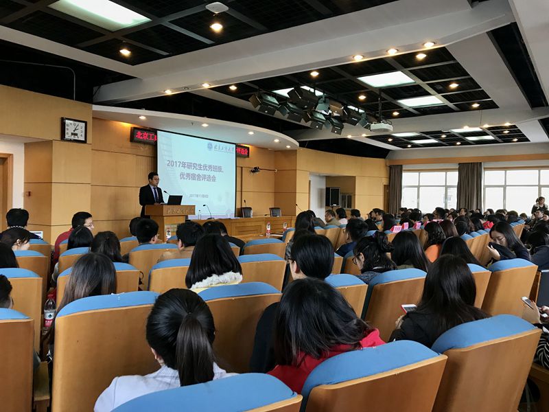 為認真學習貫徹落實黨的十九大精神和高校思政工作會議精神,充分發揮學院班級、學生宿舍在促進研究生思想政治教育、服務研究生全面發展中的積極作用和交流經驗, 11月8日下午,學校在阜成路校區召開了2017年研究生優秀班級、優秀宿舍評選會。學校黨委副書記張德玉出席會議,研究生院院長兼研工部部長楊德勇、研究生院副院長兼研工部副部長熊慧、理學院黨委副書記王嘉彥、食品學院黨委副書記胡燕霞、材機學院黨委副書記楊秀萍、經濟學院黨委副書記杜亞輝、外語學院黨委副書記任金晶、藝傳學院黨委副書記劉晶、馬克思主義學院副院長姚洪越參加了本次評選活動,各學院的研究生輔導員、優秀班級代表、優秀宿舍代表和來自全校10個學院的100位學生評委參與評選活動。