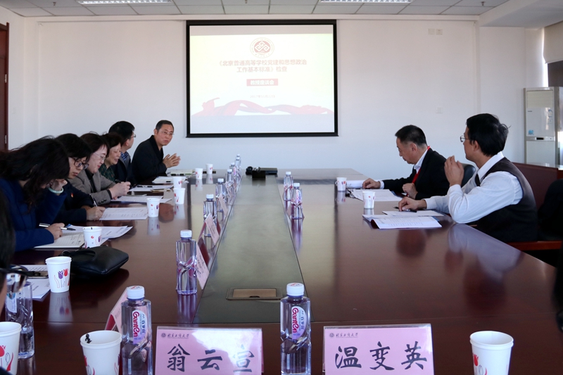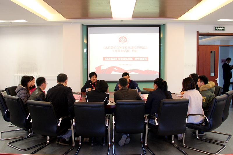 11月22日,《北京普通高等學校黨建和思想政治工作基本標準》(以下簡稱《基本標準》)入校檢查組專家蒞臨我校,通過聽取匯報、查閱材料、召開座談會、實地走訪等,對學校近五年來黨建和思想政治工作情況進行集中檢查。市委教育工委、市教委有關部門負責同志和部分北京高校黨建專家擔任檢查組成員。
