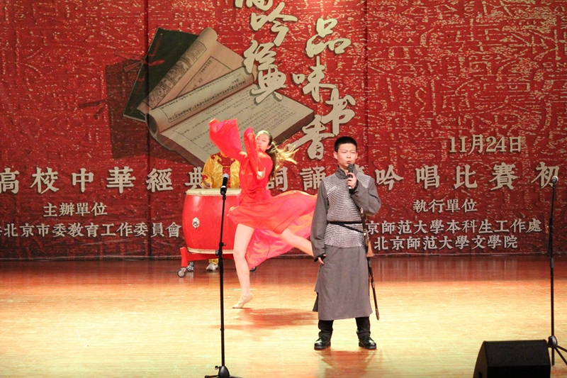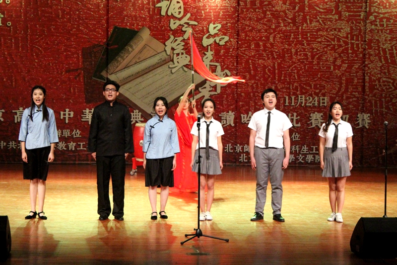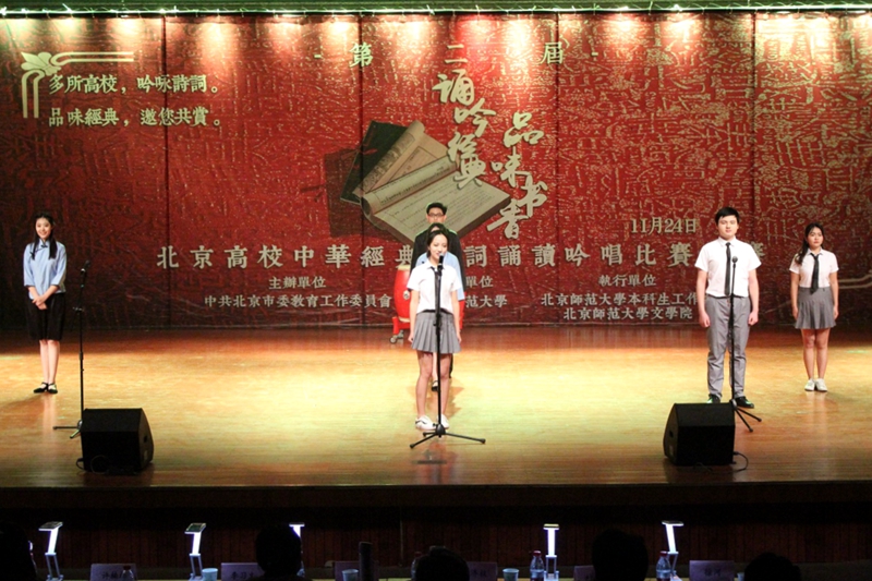 11月24日,北京市委教育工委舉辦的第二屆“誦吟經(jīng)典 品味書(shū)香”中華經(jīng)典詩(shī)詞誦讀吟唱比賽初賽在北京師范大學(xué)舉行,21支來(lái)自北京高校的學(xué)生隊(duì)伍參賽。我校由藝傳學(xué)院、商學(xué)院、理學(xué)院和計(jì)信學(xué)院9名學(xué)生組成的1支代表隊(duì)經(jīng)過(guò)初選成功入圍,并以總分排名第十二名成績(jī)榮獲三等獎(jiǎng)。這也是我校首次在此類(lèi)比賽中斬獲獎(jiǎng)項(xiàng)。