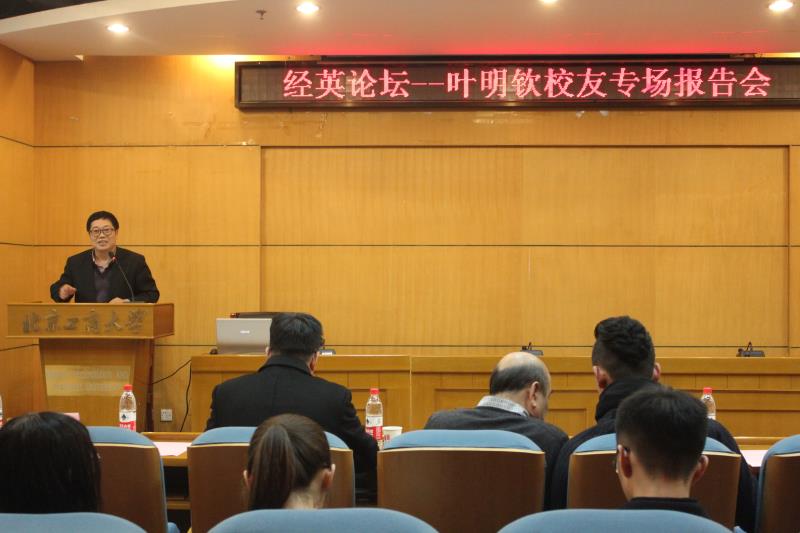 12月27日,經(jīng)濟(jì)學(xué)院在阜成路校區(qū)舉辦“經(jīng)英論壇”校友專場(chǎng)報(bào)告會(huì)。學(xué)院邀請(qǐng)78級(jí)商業(yè)經(jīng)濟(jì)系校友、金港控股有限公司董事長(zhǎng)、金港汽車文化發(fā)展(北京)股份有限公司董事長(zhǎng)兼CEO葉明欽重回母校,為師生做題為“金港商業(yè)模式”的高端學(xué)術(shù)講座。研究生院院長(zhǎng)楊德勇、校友會(huì)秘書長(zhǎng)呂東燕、經(jīng)濟(jì)學(xué)院黨委書記張正平與150余名研究生參加了本次報(bào)告會(huì)。會(huì)議由學(xué)院黨委副書記杜亞輝主持。