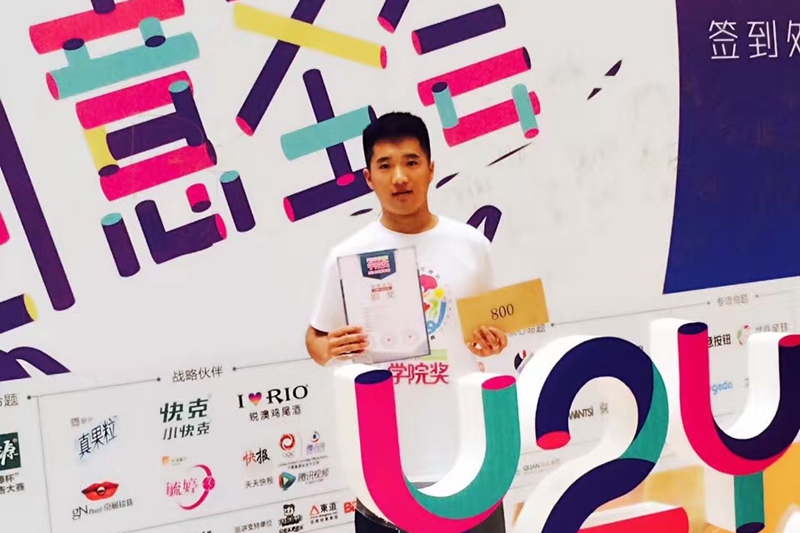 楊冰不僅學習成績名列前茅,在各種比賽中的表現也可圈可點。他連續兩年參加中國大學生廣告藝術節,并榮獲銅獎和優秀獎,在北京市八大處設計大賽中榮獲三等獎。雖然每次比賽都總會遇到各種各樣的挫折,可是他總是越挫越勇。他甚至形象地把這種迎難而上的精神稱作“自虐”精神。他說:“趁現在年輕就得多吃點苦,現在的苦才能換來以后的甜。”
