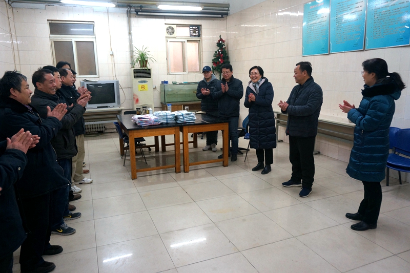 鄭文紅主席和張耘副校長詳細了解了后勤、保衛等部門對合同制員工工作安排的狀況,代表學校和工會感謝他們在學校各自崗位上的堅守,感謝他們寒假期間放棄與家人團聚的機會,保障了校園安全、水電氣暖運行、餐飲供應、動力維修等工作的正常有序,確保了校園的和諧安全穩定。同時,希望大家在遇到問題和困難時能真實反映情況,學校和工會愿意給予最大的幫助。兩位校領導叮囑大家轉達學校對家屬的新春祝福,祝愿大家春節愉快,幸福安康。