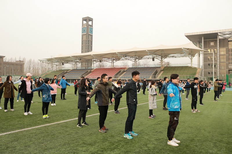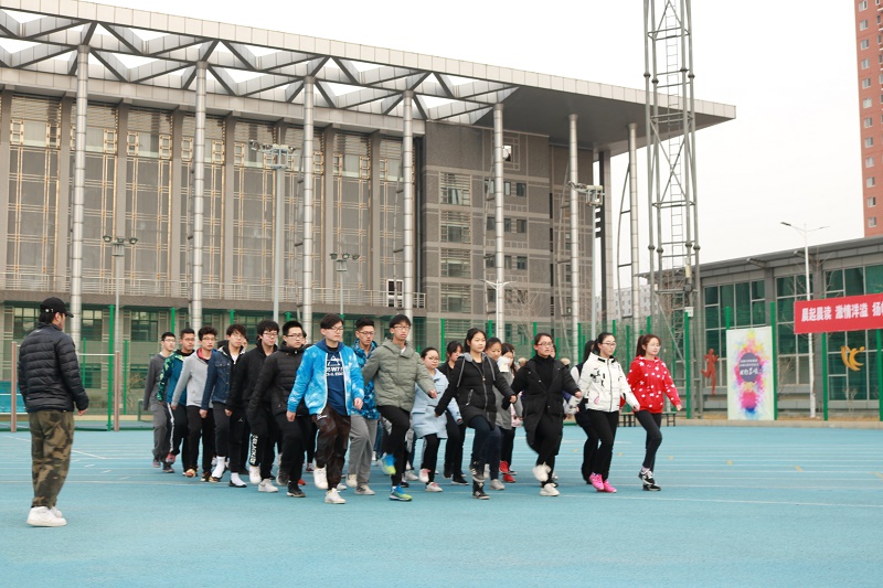 清晨6點40分,各學院學生在輔導員和學生干部的組織下,陸續開始了新學期第一次晨練活動,或跑步熱身,或做操伸展筋骨,或組織跳繩、踢毽子、袋鼠跳等趣味活動。