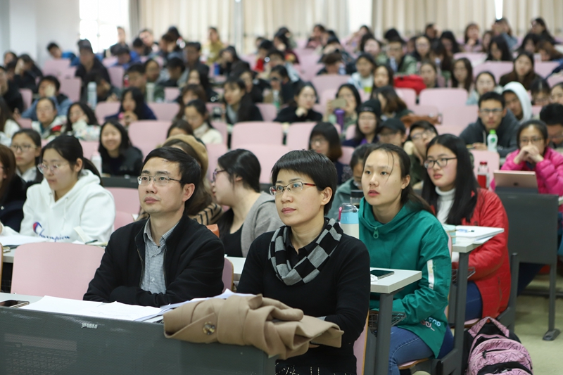 學生處處長呂素香就學生在申請和派出期間的相關規定和要求為學生進行了講解,并從學生的個人使命和自我規劃方面與大家進行了交流。教務處副處長楊超就派出項目教學方面事宜向同學們進行了說明,并就2018年參加派出學生課程認定、學分轉換、學位授予等內容對同學們進行了指導。