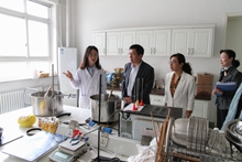 座談會前,張錦主席一行走訪了學校職工之家,參觀了咸味香精實驗室、植物資源研究開發北京市重點實驗室和乳制品營養健康技術創新工作室、皮膚醫學養生技術創新工作室及教職工服務基地。