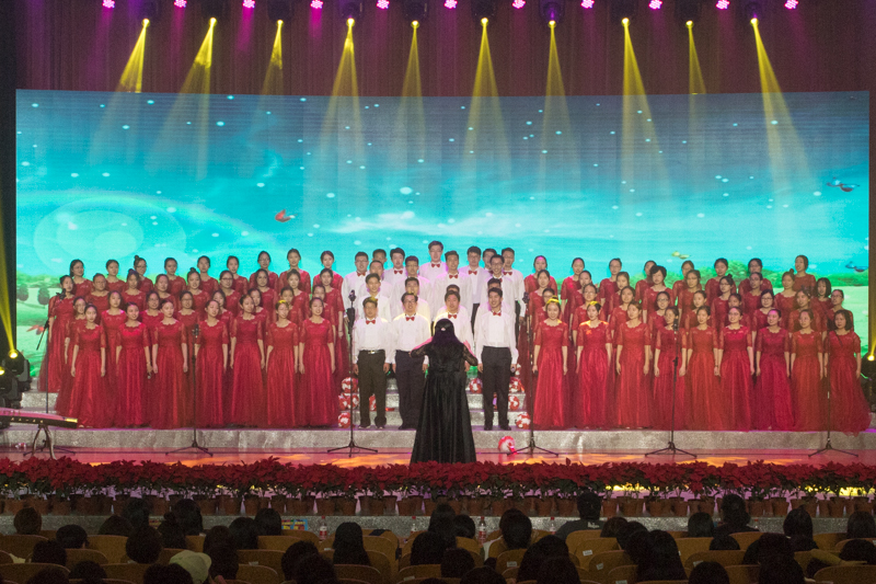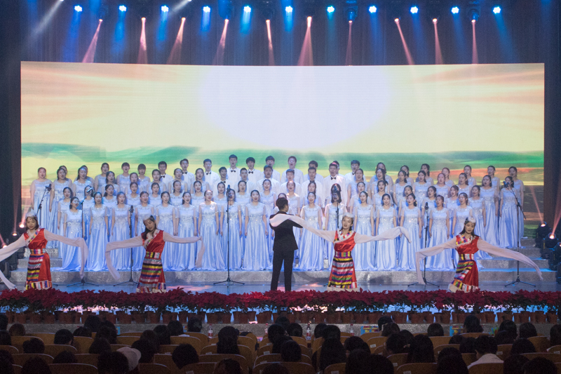 此外各學院還分別演唱了一首自選歌曲,《當那一天來臨》《北京的金山上》《沂蒙山小調》《美麗中國走起來》《最初的夢想》《走向復興》《我和我的祖國》等歌曲編排新穎,深情的朗誦、優(yōu)美的和聲、雄壯的旋律,振奮人心、悠揚動聽,激發(fā)了大家的民族豪情和愛國情懷,不斷將歌會推向高潮,贏得了現(xiàn)場師生的陣陣掌聲。