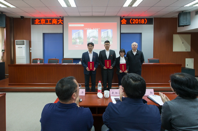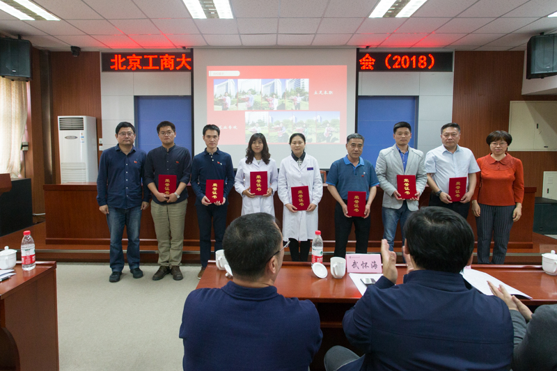 在嘹亮的國歌中大會正式開始。后勤基建處處長吉濤代表后勤部門做工作報告,介紹了后勤部門工作進展、隊伍狀況及下一步工作思路。他談到,后勤部門落實巡視整改任務、強化基礎設施建設改造、提升服務保障水平和深化黨風廉政建設等卓有成效,2017年獲得了全國“校園節水·安全供水·智慧管理”樣板示范校、全國教育后勤系統信息宣傳工作先進單位、2017全國教育節能傳播獎、北京工商大學黨建創新案例等榮譽,服務保障工作獲得了師生理解、支持和肯定。他提出,下一步學校后勤工作要從“管理范式、服務模式、監督方式”方面進一步深化改革創新,以科學化的規劃、精細化的管理、標準化的運行、人本化的服務做好后勤服務保障。