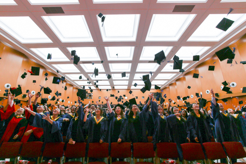 在激昂的樂曲聲中,同學(xué)們身著學(xué)位服依次有序走上主席臺(tái),校領(lǐng)導(dǎo)、校學(xué)位評(píng)定委員會(huì)委員為他們扶正流蘇并留下珍貴合影。學(xué)位授予儀式最后,在“我要飛得更高”的音樂聲中,畢業(yè)生們歡呼著“畢業(yè)啦!”并一起把學(xué)位帽拋向空中,為畢業(yè)典禮畫上了圓滿的句號(hào)。鮮花、掌聲、歡笑、淚水,禮堂里到處都是畢業(yè)的喜悅和分別的愁緒。