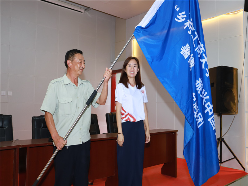 學(xué)院團(tuán)委書記尹航老師對(duì)實(shí)踐團(tuán)提出了期望。希望實(shí)踐團(tuán)成員們能盡自己所學(xué)所能、所感所想,在此次社會(huì)實(shí)踐活動(dòng)中獲得收獲與成長(zhǎng)!隨后村委會(huì)干部劉福成為實(shí)踐團(tuán)授予旗幟。在主持人韓亞新的帶領(lǐng)下,實(shí)踐團(tuán)全體成員進(jìn)行了莊嚴(yán)宣誓。
