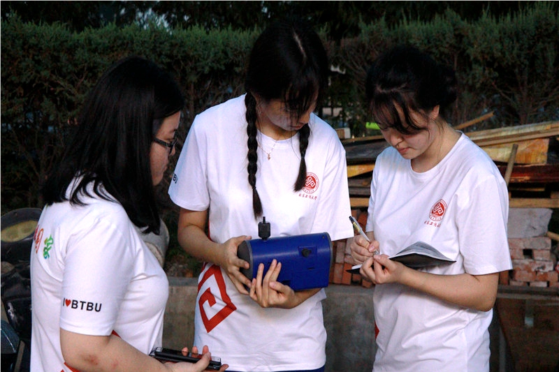當(dāng)日下午實(shí)踐團(tuán)準(zhǔn)時(shí)出發(fā),前往此次實(shí)踐活動(dòng)的目的地——漢石橋濕地。到達(dá)之后,實(shí)踐團(tuán)稍作休息便開始了緊張有序的準(zhǔn)備工作。各組按照實(shí)踐計(jì)劃對(duì)第二天監(jiān)測(cè)活動(dòng)做了具體安排,大氣組、噪聲組和水質(zhì)組的同學(xué)們對(duì)第二天的監(jiān)測(cè)儀器進(jìn)行了預(yù)測(cè)試,以保證第二天活動(dòng)的順利進(jìn)行。當(dāng)晚,大氣組和噪聲組的成員們對(duì)周邊環(huán)境進(jìn)行了初步監(jiān)測(cè)。