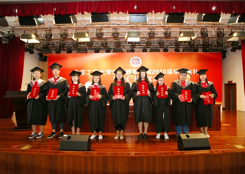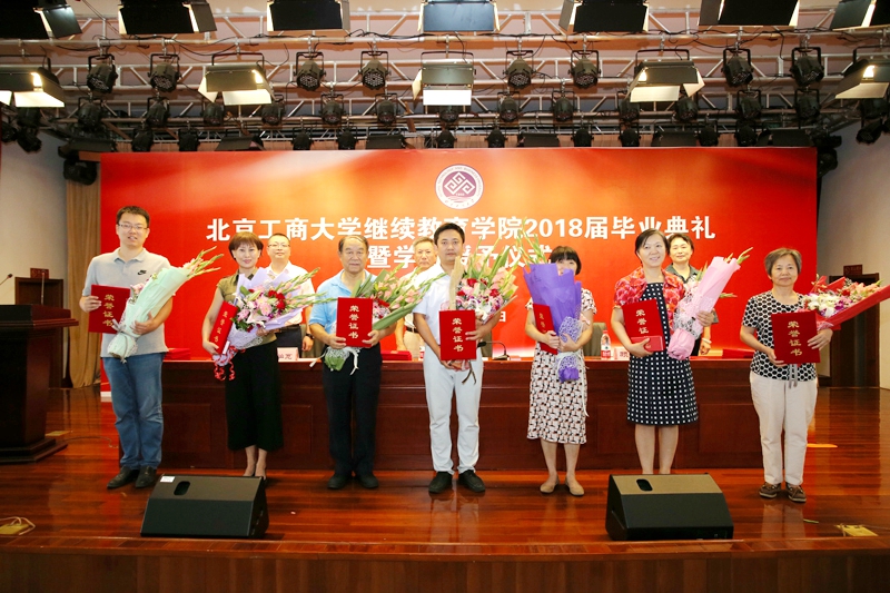 在雄壯的國歌聲中,典禮正式開始。顧紅宣讀了《北京工商大學繼續教育學院關于2018屆成人教育學生準予畢業及授予學位的決定》《北京工商大學繼續教育學院關于表彰2018年優秀教師的決定》《北京工商大學繼續教育學院關于表彰2018屆優秀畢業生的決定》。2018屆共有343人應屆畢業獲得畢業證書,包含業余、函授兩類,應屆、往屆兩種,高起本、專升本、專科三個層次,畢業生中年齡最小的18歲,最大的47歲,絕大多數為20、30歲的在職青年。其中56人被授予學士學位,有15人被評為優秀畢業生。授課教師中有9人被評為優秀教師。