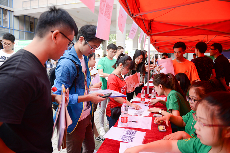 報到當天,溫馨、飽含激情的迎新展板矗立在學校門口,處處洋溢著濃厚而熱烈的喜慶氛圍。熱情的老師,熱心的師兄師姐們,在入學的第一天便給每位新同學帶來了溫暖和感動。