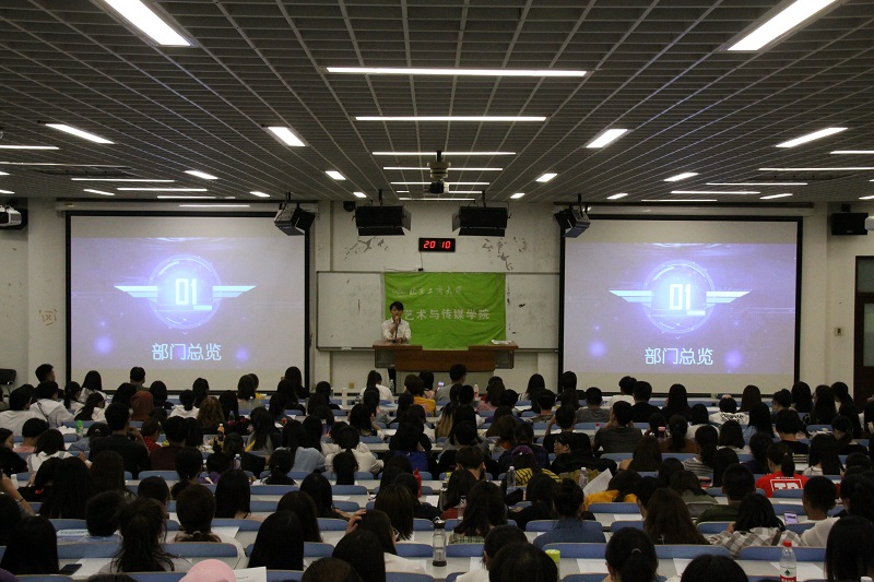 招新宣講會上播放了學院學生組織精心制作的視頻短片,動感十足的背景音樂和豐富多彩的活動圖片瞬間點燃了同學們的熱情。學院團委副書記李健蓉代表主席團對學院學生組織系統進行簡要介紹。各部門有序上臺介紹工作職能、工作內容以及往期活動情況,風趣幽默地演講和明快簡潔的PPT展示都吸引著新生們的目光。