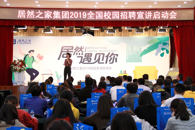 宣講環節中,居然之家集團2019校招項目負責人李曉楠為畢業生詳細講解了招聘崗位、薪酬福利、職業發展空間等問題。兩位校友代表分別分享了在居然之家的成長歷程、所思所想,并希望可以有機會和學弟學妹們共同見證居然之家的快速發展,期待大家在居然之家開啟職業之旅。