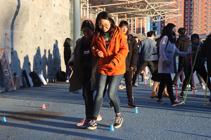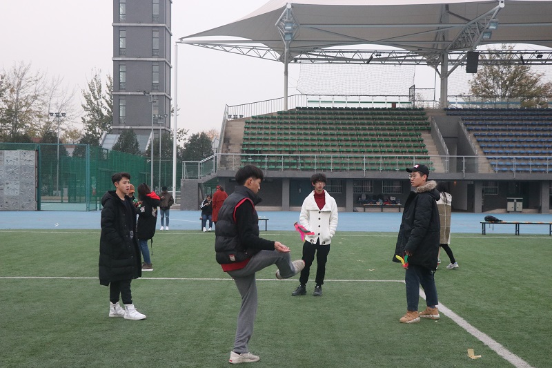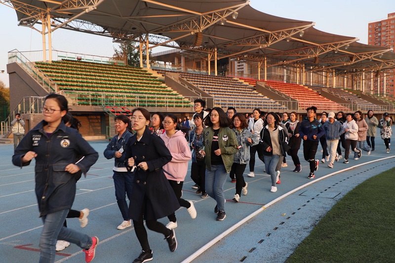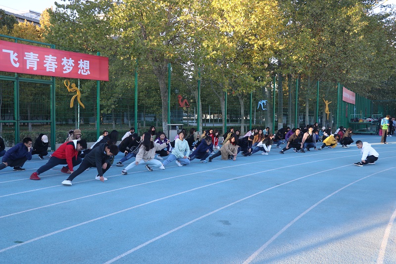 每次晨練,由退伍老兵帶領同學們分批進行短暫的熱身活動與晨跑,在基本的活動進行之后,同學們會運用毽子、長繩、跳繩等運動器材,解散進行個人或小組鍛煉。除此之外,學院團委心理素質部還為大家精心組織了兩人三足、不倒森林的趣味活動,鍛煉身體的同時,培養了團隊精神。