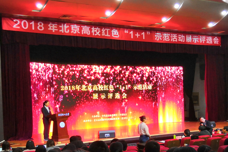 11月28日下午,由北京市委教育工委開展的以“不忘初心 牢記使命,勇做擔(dān)當(dāng)民族復(fù)興大任的時代新人”為主題的北京高校紅色“1+1”示范活動展示評選會在北京化工大學(xué)舉行。經(jīng)北京56所高校指導(dǎo)、總結(jié)、推薦的1313個學(xué)生黨支部參與了今年的活動,有25個黨支部入圍了最后的評選會。我校經(jīng)濟(jì)學(xué)院本科學(xué)生16級黨支部脫穎而出,再次榮獲一等獎。2018年北京高校紅色“1+1”示范活動展示評選會在我??茖W(xué)會堂舉行。市委宣傳部、市委教工委、市委農(nóng)工委、團(tuán)市委、首都文明辦等相關(guān)部門負(fù)責(zé)人應(yīng)邀擔(dān)任評委。各高校主管部門負(fù)責(zé)人、學(xué)生黨支部代表、媒體代表共400多人參加了評審會。