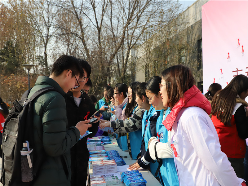 11月30日中午,在第31個“世界艾滋病日”即將到來之際,為持續(xù)推進(jìn)“師生健康 中國健康”主題健康教育活動和學(xué)校艾滋病防控工作,我校在良鄉(xiāng)校區(qū)舉行防艾宣傳活動。學(xué)校團(tuán)委、學(xué)生處、校醫(yī)院相關(guān)負(fù)責(zé)老師及青年志愿者協(xié)會和紅十字會學(xué)生分會等參加活動。
