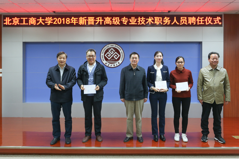 孫寶國校長在講話中首先向獲聘人員表示祝賀。他指出:舉行儀式是為了進一步增強教師的榮譽感和責任感。晉升職稱是專業(yè)技術人員的愿望,近幾年學校的職稱工作嚴謹規(guī)范,但是破格或直升之路還需進一步完善。晉升職稱是榮譽,更是責任,是起點,而不是終點。學校發(fā)展進入關鍵時期,希望獲聘人員增強責任意識,在教學、科研、學科建設和管理等方面再接再厲、再出佳績。學校未來的發(fā)展目標是建成商科、輕工和食品特色的高水平研究型大學,這是我們努力的方向。目標一旦確定就不會動搖,而且也有信心實現(xiàn)。我們要用自己的雙手,通過自己的努力,把學校帶入世界一流大學發(fā)展的行列。同時,也要清楚地看到學校在向世界一流大學邁進的過程中的短板和不足,我們要認真分析,凝練好方向。學校發(fā)展與每一位教職工息息相關,希望大家充分發(fā)揮作用,為學校學科建設添磚加瓦,為學校未來的發(fā)展共同努力,做出更大的貢獻。