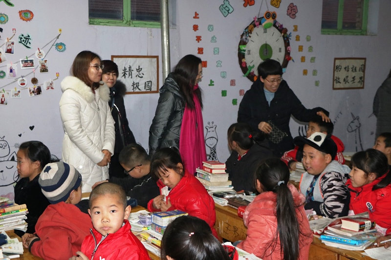 簽約儀式結束后,一行人員赴地處山區的桃花鎮北董莊學校進行了實地走訪考察,了解該校的辦學、師資、管理和學生生活情況。