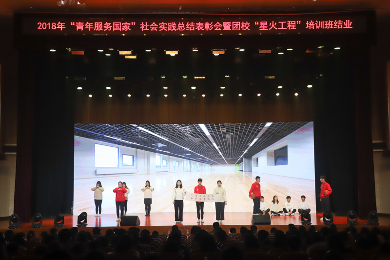 12月19日,學校2018年“青年服務國家”暑期社會實踐總結表彰會暨團校“星火工程”培訓班結業儀式在良鄉校區舉行。學校黨委副書記張德玉出席本次大會,黨委宣傳部常務副部長張春萍、校團委書記王海偉、學生處副處長蓋曉慶、校團委副書記孫惟佳、經濟學院黨委副書記杜亞輝、商學院黨委副書記樊江濤,實踐對接單位代表房山區南尚樂中學校長毛玉革、良鄉五中副校長許俊杰,各學院團委書記、暑期社會實踐帶隊教師以及700余名團校學員和學生骨干參加了大會。