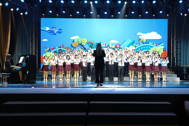 因?yàn)闊釔郏赃x擇留在學(xué)校、建設(shè)學(xué)校,詩朗誦《我們的四十年》,由分別在1978、1988、1998、2008和2018年考入學(xué)校的5位師生代表,深情講述了自己在校學(xué)習(xí)工作的經(jīng)歷和學(xué)校40年來取得的喜人成績,一張張定格歷史的圖片,一句句真摯的話語將晚會推向高潮,在場師生無不為之感動;由學(xué)校合唱團(tuán)帶來歌曲聯(lián)唱《流金歲月》,“春天的故事”“在希望的田野上”“東方之珠”“我的未來不是夢”等時(shí)代金曲帶領(lǐng)人們重溫了40年的光輝歲月;由Aloha天使團(tuán)帶來的《冰火奇緣》動感亮麗,學(xué)生們身著自己設(shè)計(jì)的服飾款款走入觀眾席中,自信的笑容展現(xiàn)了他們青春的朝氣。