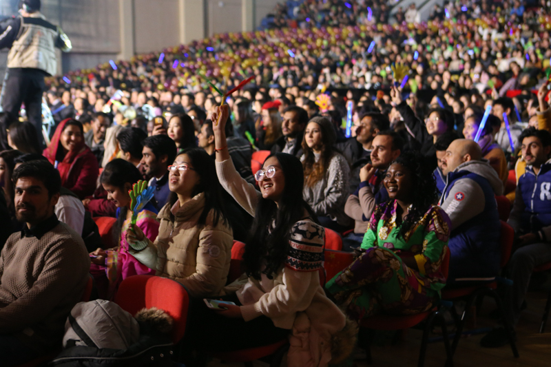 校合唱團(tuán)的《共圓中國夢》唱出了青年學(xué)子用勞動和汗水共圓中國夢的決心;在工商達(dá)人秀的舞臺上出彩的校園達(dá)人們展示著他們各自的絕活兒;留學(xué)生們表演的《北京歡迎你》,以歡快熟悉的旋律表達(dá)了他們對北京的熱愛;管樂團(tuán)《瑤族舞曲》《自由探戈》兩首交響曲,既有民族舞曲的自由歡樂,又有爵士音樂的俏皮輕快,別出心裁;舞蹈團(tuán)表演的《夢想》表達(dá)了學(xué)子們不畏艱難、不懈努力的追夢和圓夢過程;“工商大舞臺”融舞蹈、太極、武術(shù)、球類等表演形式,剛?cè)嵯酀?jì),生機(jī)勃發(fā),精彩紛呈的節(jié)目將現(xiàn)場點(diǎn)燃;來自國旗護(hù)衛(wèi)隊(duì)、學(xué)校戰(zhàn)友協(xié)會、民兵連共同表演的《兵耀工商》節(jié)目,隊(duì)列表演英姿颯爽,格斗展示扣人心弦,展示了他們心懷報(bào)國熱情,兵耀工商的決心。